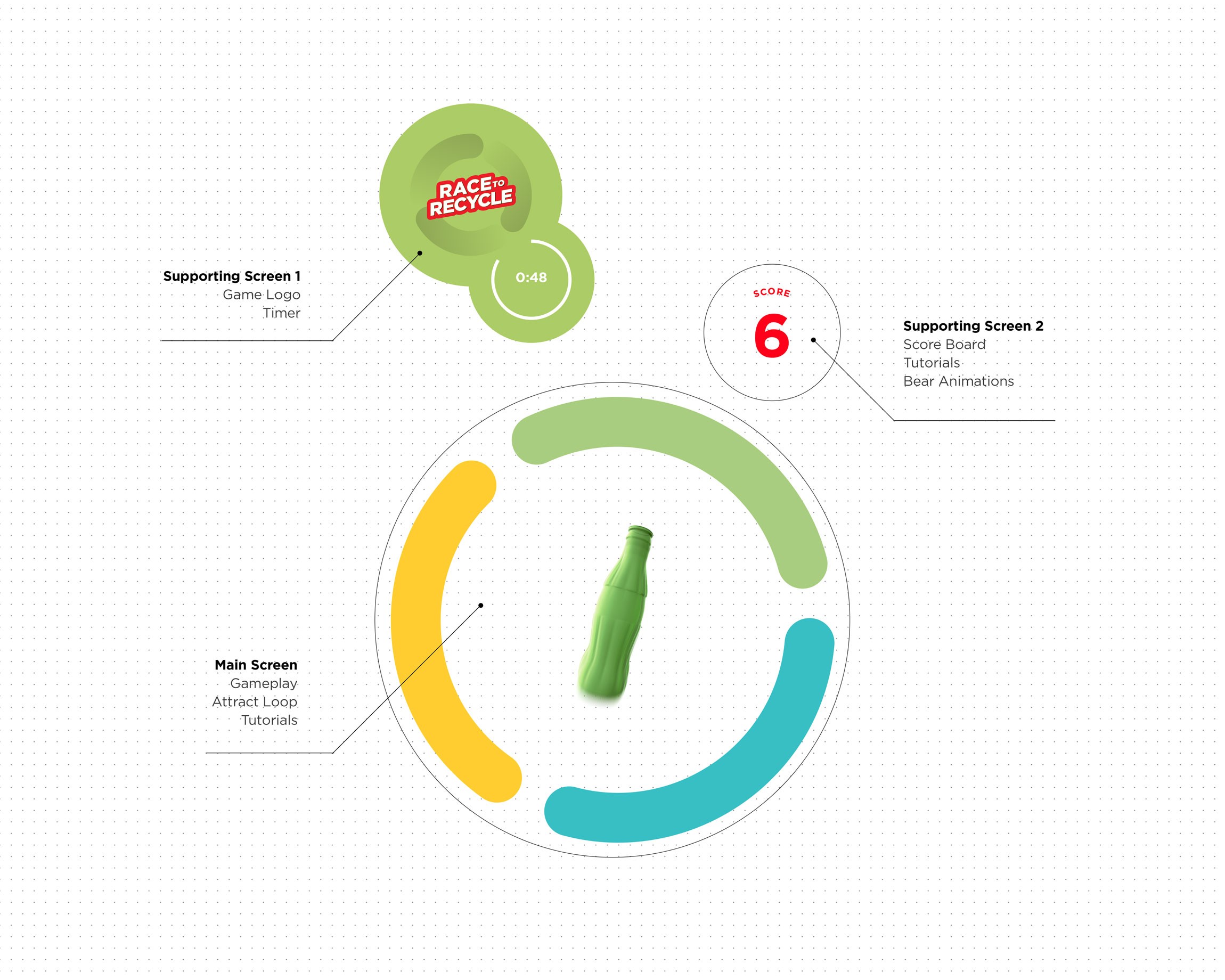 To address the issue, the team designed a three-piece interactive kiosk system with 4 engaging activities. These kiosks entertain visitors while educating them on Coca-Cola’s heritage, beverage portfolio, community involvement, and sustainability efforts. The result is a functional solution that turns idle wait time into an interactive and memorable brand experience.