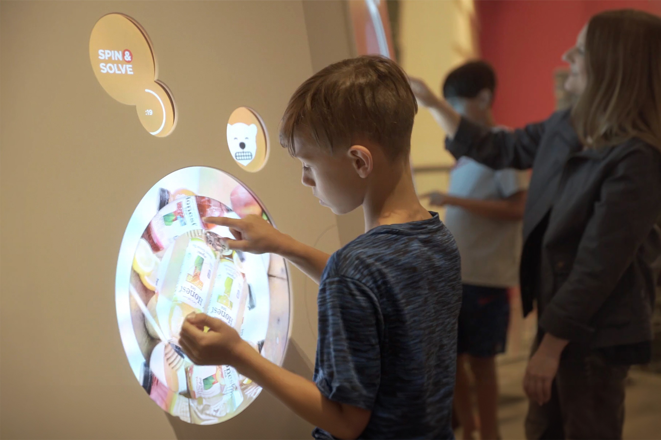 The physical form of the fixture is inspired by the visual language of bottles and bubbles, attracting visitors to explore what’s inside. The content design mixes company archive materials with bespoke animation and variations on standard game tropes, including memory-based card matching, trivia, and picture puzzles.
