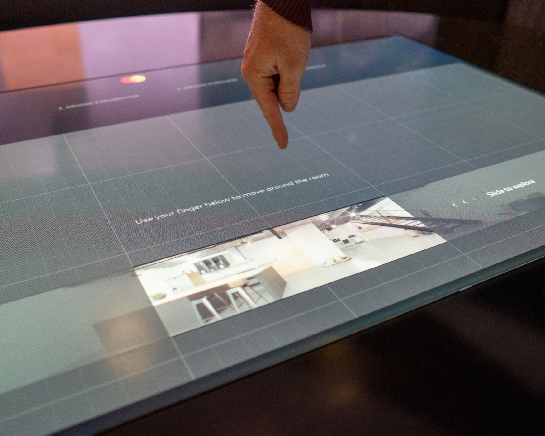 The design leveraged 3D environments and motion graphics to create a seamless blend between the physical and digital worlds. Technologies like WebGL and Multitaction Canvas enabled a fluid, visually captivating experience, despite the constraints of adapting to Mastercard’s existing infrastructure. The project effectively gamified the purchasing journey, making it engaging for executive buyers and partners, while simultaneously showcasing Mastercard’s strengths.